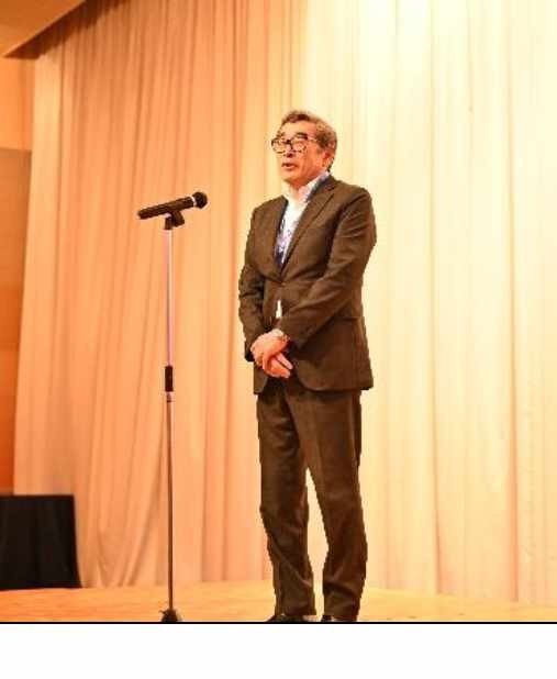 会は、胆振軽種馬農業協同組合長の田中芳郎氏(S51V卒)による開会のご発声で幕を開け、続いて昨年より浦河町長を務められている松田有宏氏(S62J卒)による乾杯の音頭をいただきました。