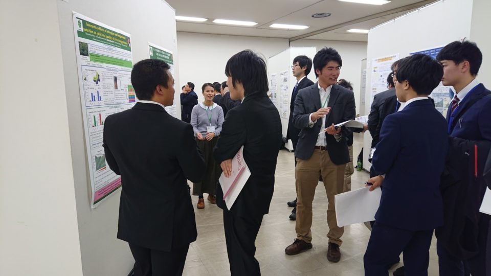 The 2018 Fall Conference organized by the Hokkaido branch of the Japanese Society of Soil Science and Plant Nutrition was held at Asahikawa Civic Culture Hall (Asahikawa City) on Thursday, November 29. About 100 members participated in the Conference for poster presentations on the latest research results from Hokkaido, domestic and foreign experts on soil science and plant nutrition. Ms. Hanna Takahashi and Mr. Njaratiana Faniry Adrien Rakotoarivelo, second-year students in the Master’s Program for Agro-environmental Science of the Graduate School of Animal Husbandry who made presentations respectively titled, “Evaluation of soil fertility of volcanic ash soils in potato producing areas in Kiambu, Republic of Kenya” and “Interactive effects of nitrogen and magnesium nutrition on yield and quality of processing potatoes,” both won the Best Poster Award out of 44 posters, receiving their prizes at the get-together held on the same night as the poster session.