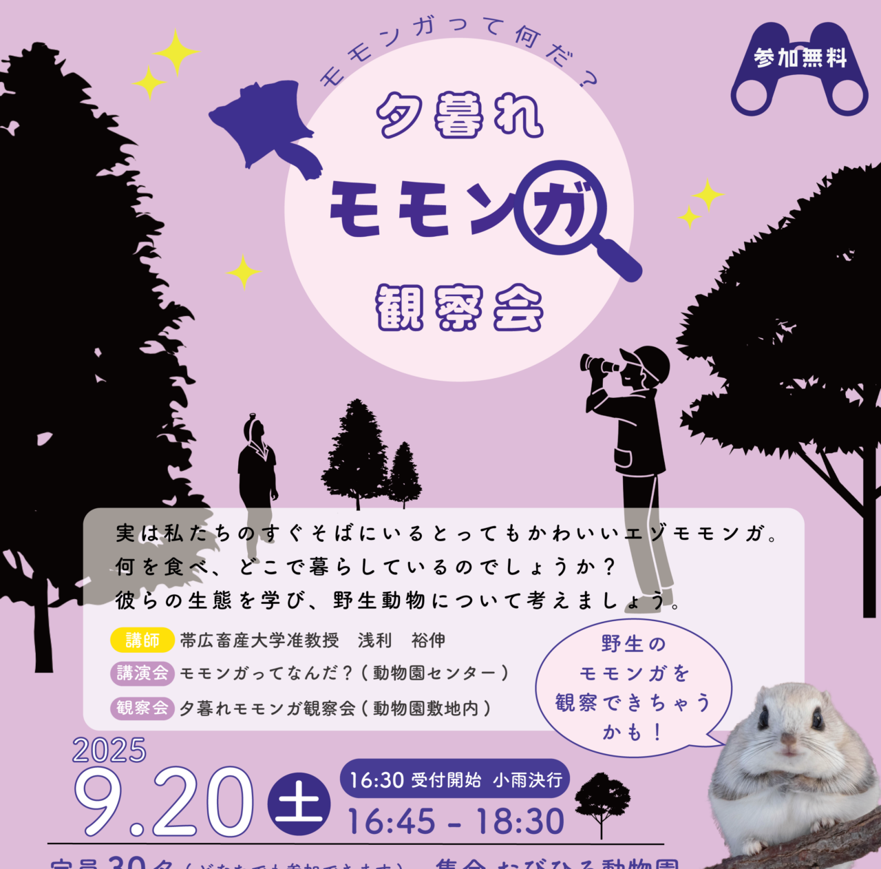 彼らの生態について学び、夜のおびひろ動物園でモモンガ観察会を行います。