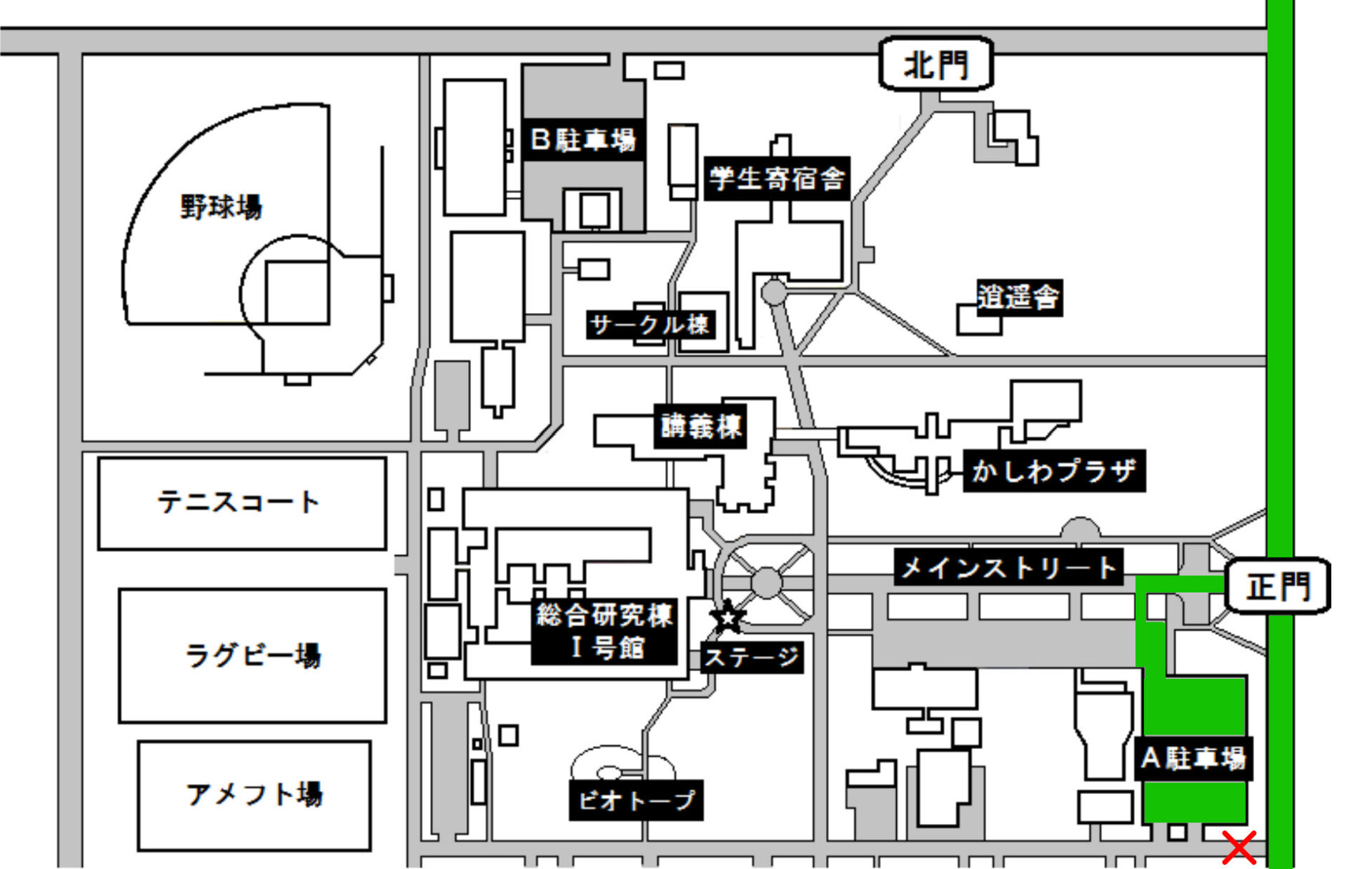 駐車場は地図のとおりA駐車場をお使い頂けます。