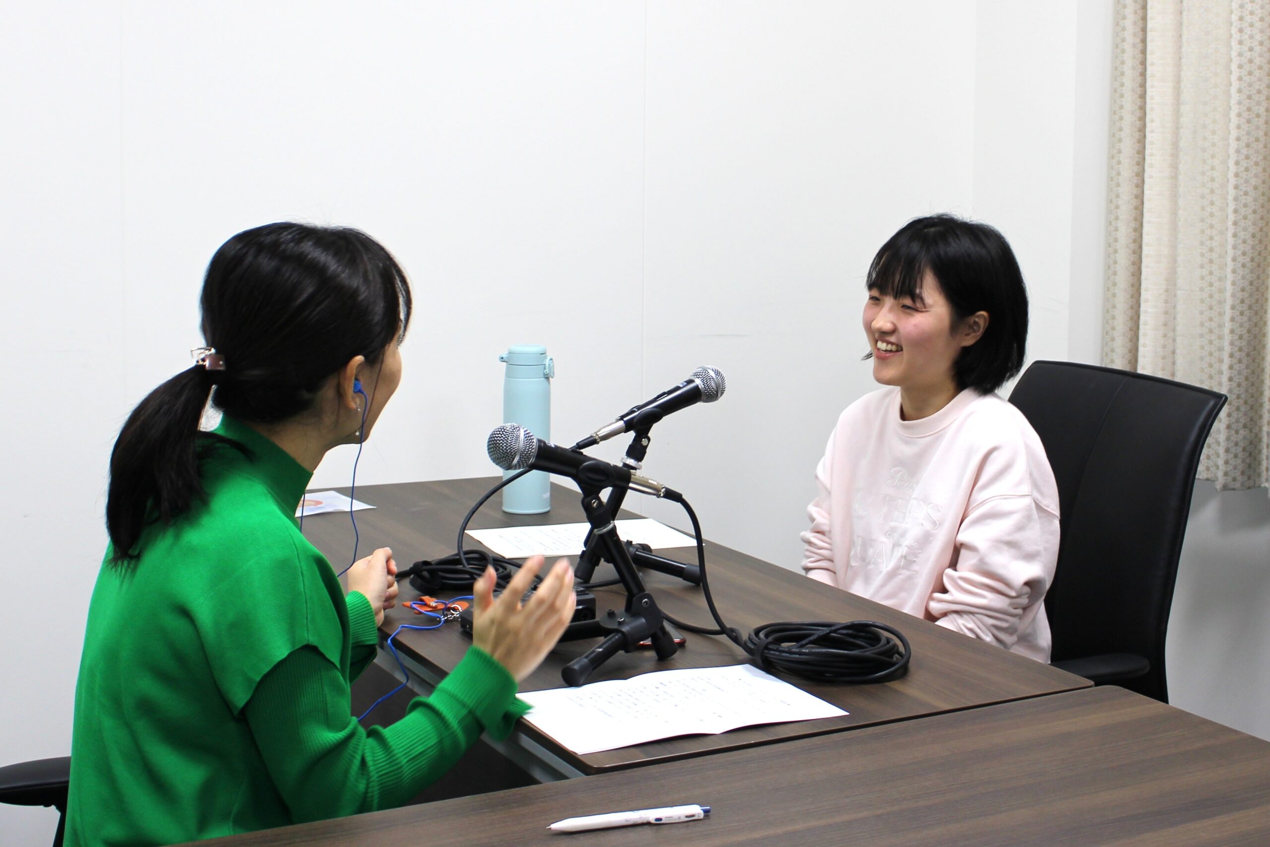 学内で行われた収録では、川合さんが所属する「うしぶ。」での活動や、学びの内容、そして地域と連携した取り組みについて紹介しました。