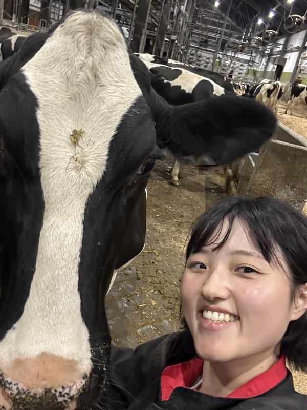 「うしぶ。」は、学内の牛舎での搾乳体験や牛の飼育を通じて畜産を学ぶサークルで、学生たちは搾乳した生乳をもとに「畜大牛乳」や「畜大アイスクリーム」などの製品づくりに携わっています。収録では、川合さんが「畜大の牛は人懐っこくて本当にかわいいです。」と笑顔で語る場面もありました。