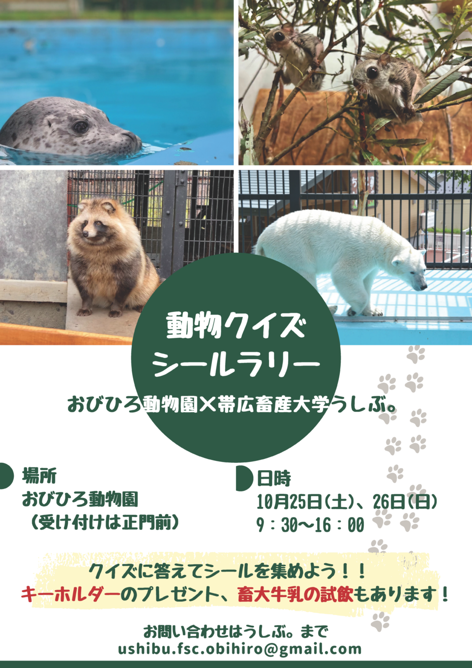 また、「うしぶ。」では牛の飼育活動にとどまらず、帯広市と連携した「ちくだいらんぷプロジェクト」にも参加しており、10月25日(土)・26日(日)におびひろ動物園で開催される同プロジェクトのクイズイベントについても紹介しました。