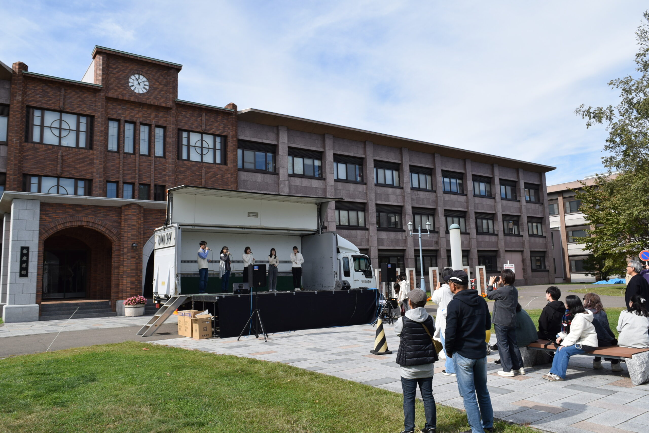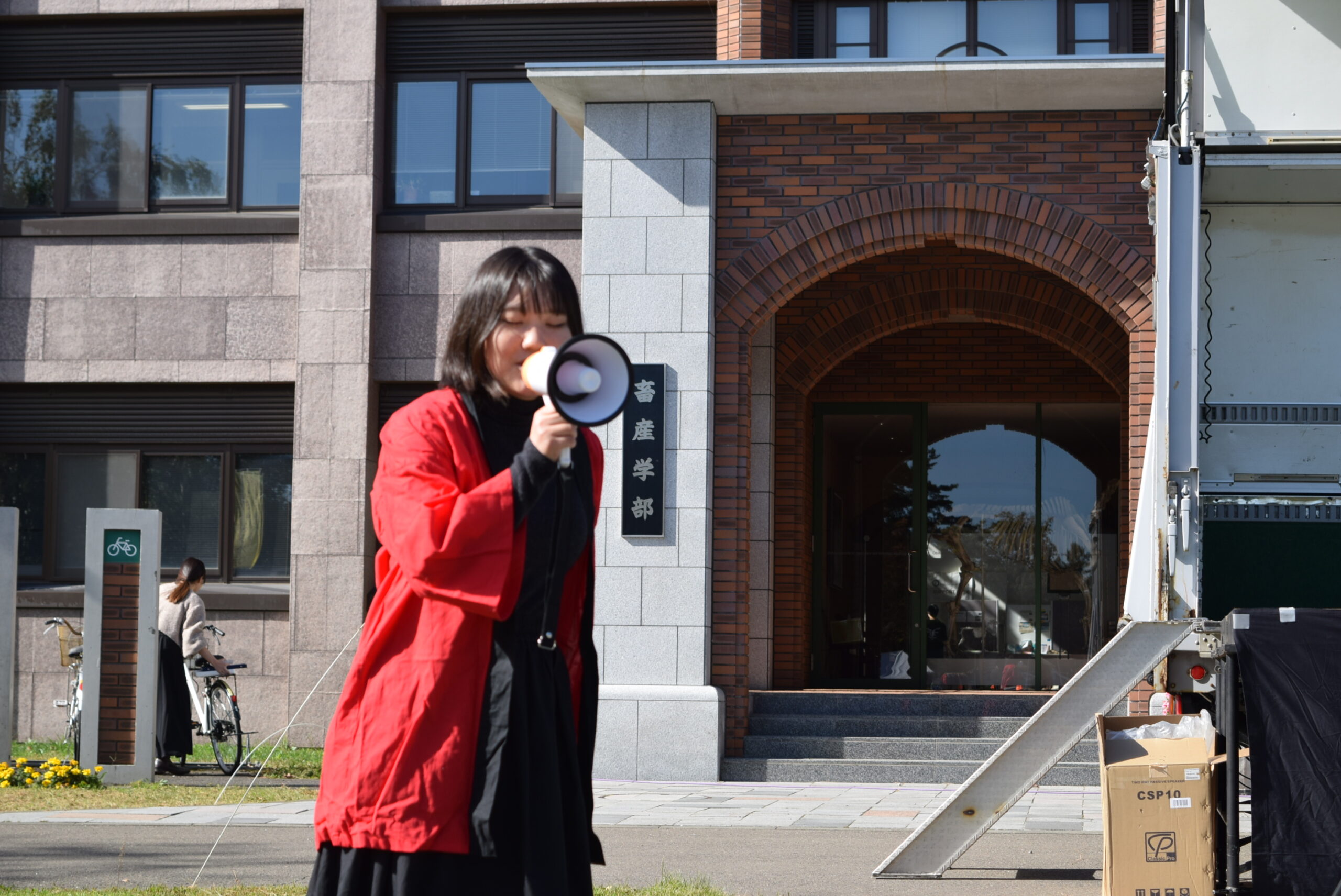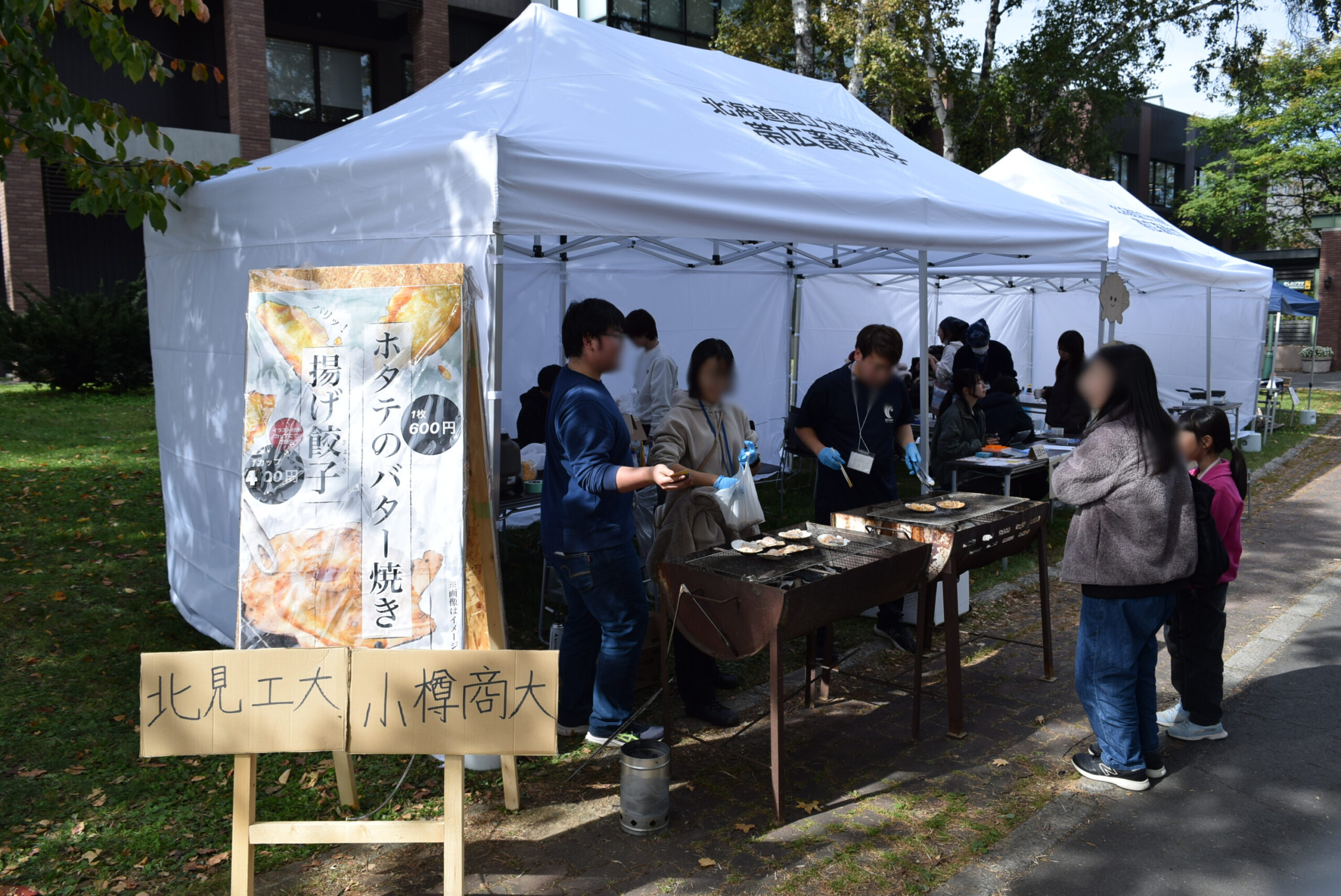 出店では、学生たちが工夫を凝らした飲食メニューや体験型企画を提供し、会場を盛り上げました。また、昨年度に引き続き大学間交流事業として参加した北見工業大学『工大祭実行委員』による「ホタテバター」や、今年度から新たに参加した小樽商科大学『緑丘祭実行委員』による「揚げ餃子」も大変な人気を集めました。