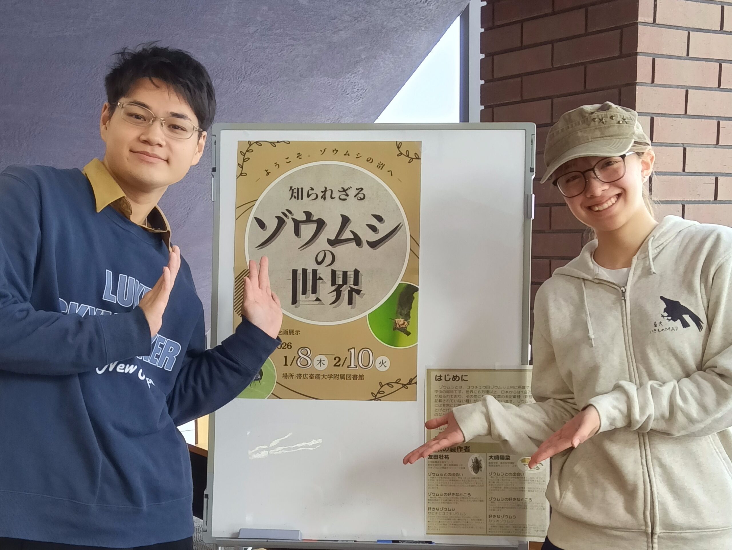 帯広畜産大学附属図書館1階にて、学生企画展示「知られざるゾウムシの世界」を開催しています。
