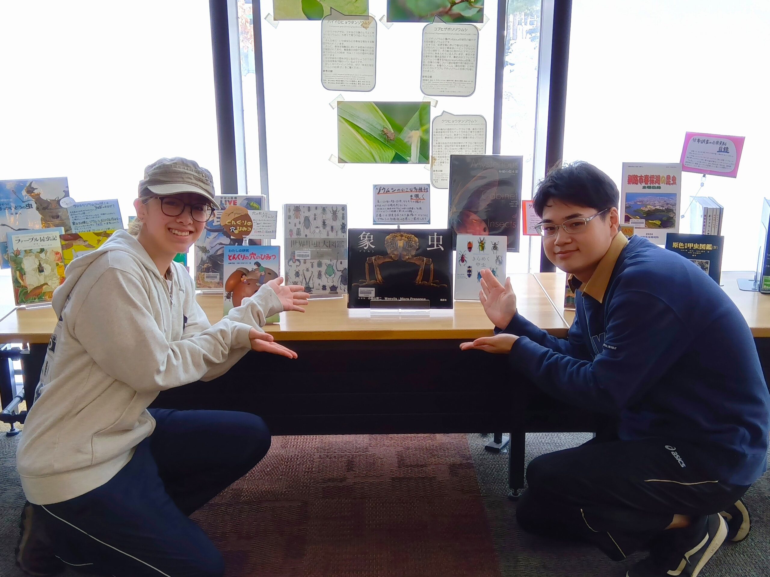 展示では、ゾウムシに関する書籍の選書をはじめ、ポスターやPOPの制作、ゾウムシの魅力を伝える写真と解説文の作成まで、展示のすべてを学生自らが手がけました。