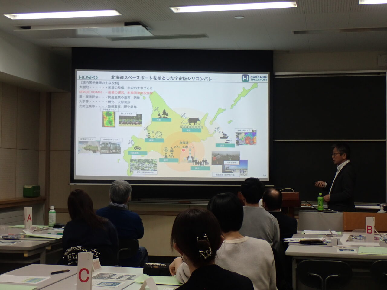 第2回(12月4日)は、「SPACE COTAN株式会社」代表取締役社長・小田切義憲氏を講師に迎え、「HOSPO – HOKKAIDO SPACEPORTの挑戦!~北海道に宇宙版シリコンバレーをつくる~」をテーマに開催しました。北海道が描く宇宙産業の未来像や、事業化に向けた挑戦についてご講演いただきました。身近な地域から世界に通用する事業を生み出そうとするスケールの大きさに、学生たちは強い刺激を受けていました。
