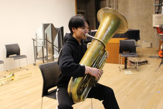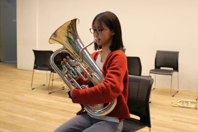 コンテストには、テナーサックス、バスクラリネット、ユーフォニアム、チューバという珍しい編成での出場となりました。中学・高校時代とは異なる楽器に挑戦した部員もおり、楽譜を手にしてから約1か月という限られた練習期間の中で、集中的に練習を重ねてきました。