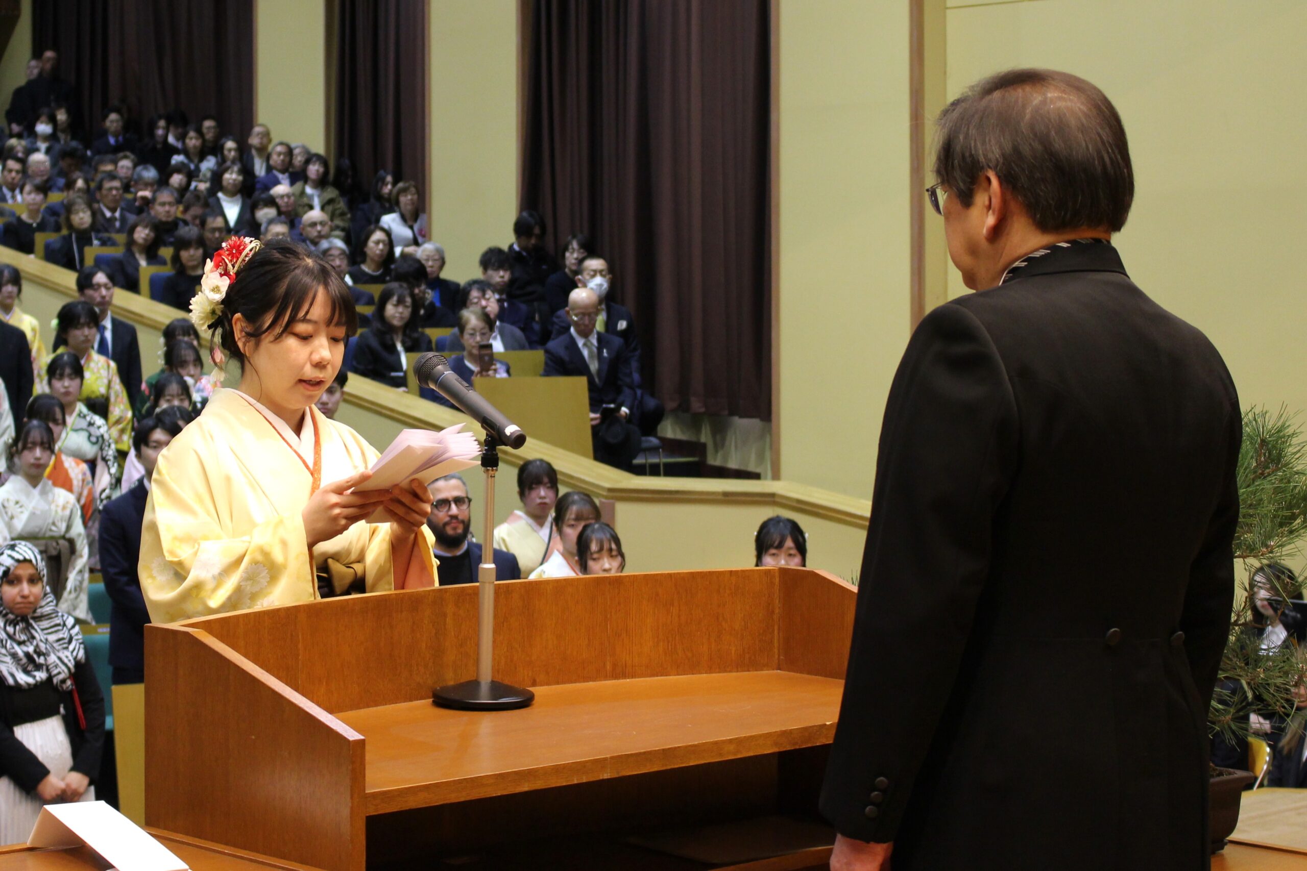 その後、卒業生を代表して共同獣医学課程の小堀玲奈さんによる答辞がありました。