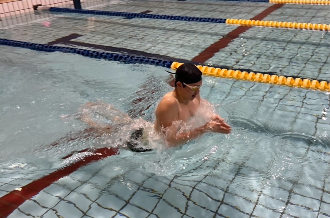 現在は、大学の水泳部と「帯広スイムパル」に所属し、週1回の部活動およびクラブでの練習に取り組んでいます。水泳部は、経験者・未経験者を問わず参加できる環境づくりを進めており、学生大会への出場を目標に活動しています。