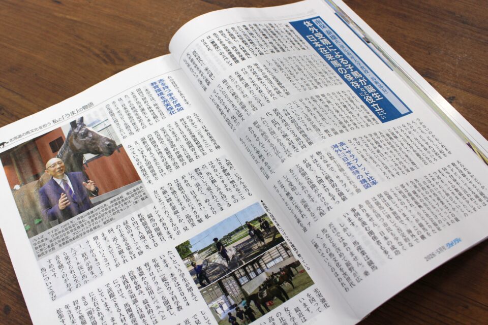 誌面では、南保教授が専門とする繁殖分野の知見をもとに、サラブレッドの魅力や地域振興との関わり、さらには馬産地としての今後の課題や人材育成の重要性などについて紹介されています。
