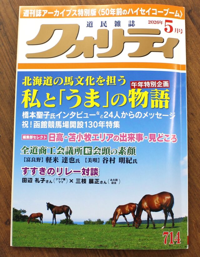 道民雑誌「月刊クォリティ」2026年5月号において、『北海道の馬文化を担う私と「うま」の物語』と題した特集が掲載され、南保泰雄教授の取り組みが紹介されました。