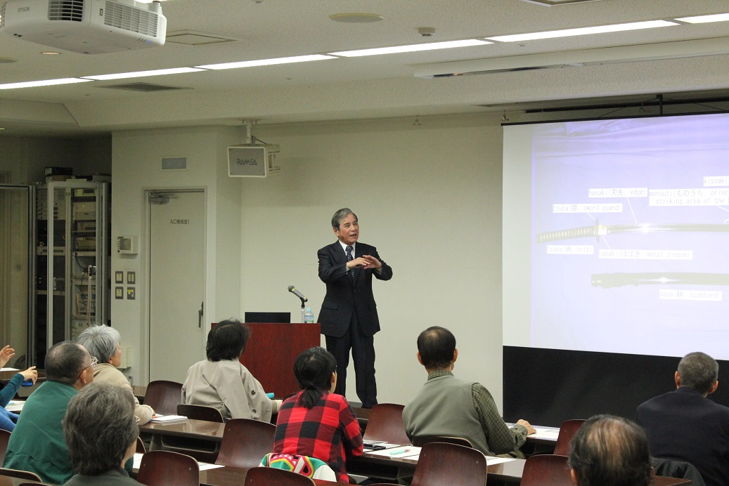 今年の講座は,「技術と文化」というテーマのもと,全3回の講演がおこなわれます。第1回は,室蘭工業大学臺丸谷 政志(だいまるや まさし)名誉教授をお招きし「日本刀の科学―科学的合理性と機能美」というタイトルでご講演いただきました。
