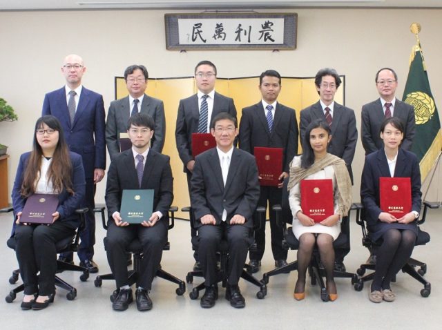 また,10月2日(月)には,同会議室おいて,秋季大学院畜産学研究科入学式を挙行し,9名の大学院畜産学研究科への入学が許可されました。